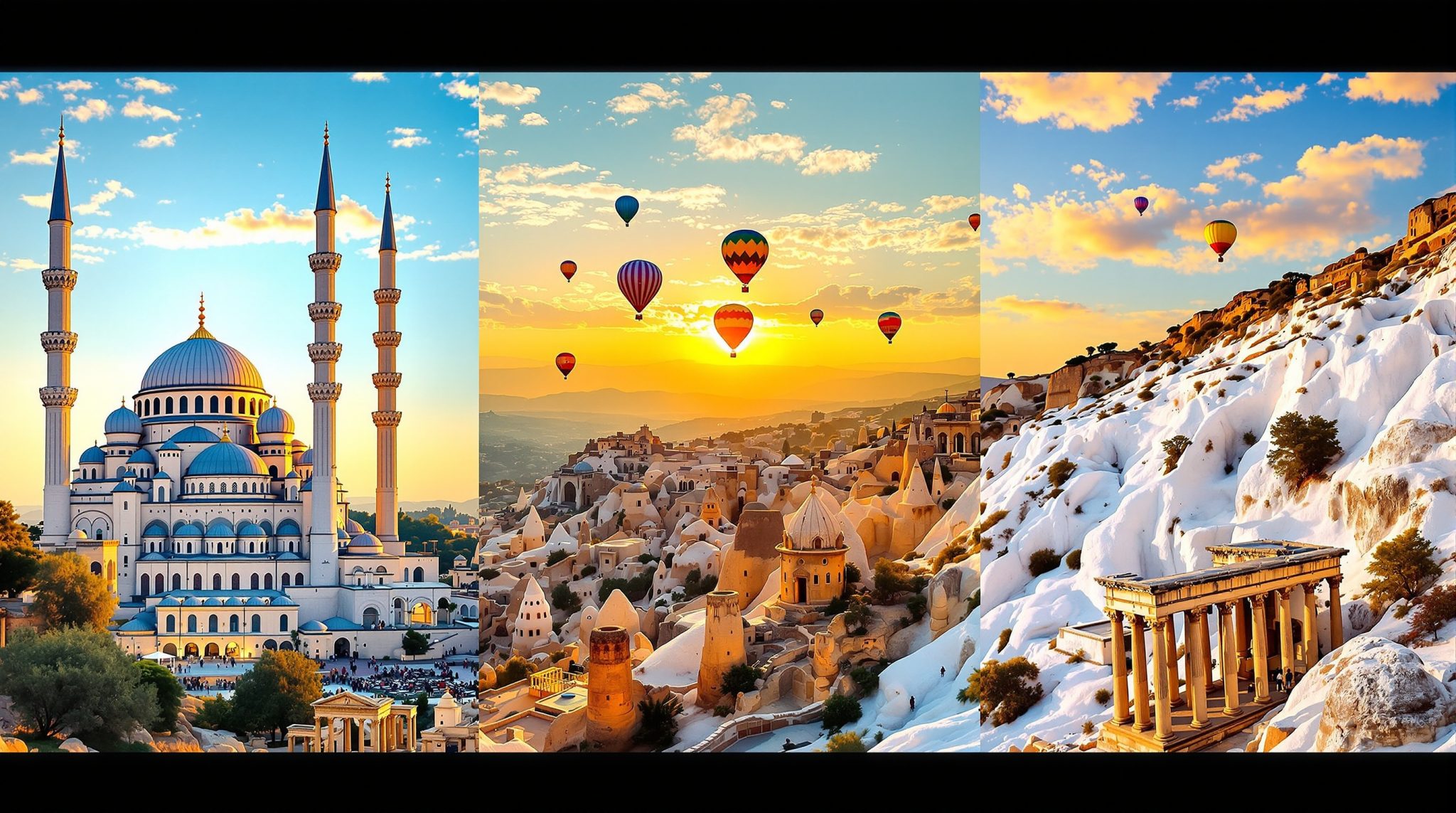 Tyrkiet er et land, hvor Østen møder Vesten, og hvor tusinder af års historie væves sammen med moderne storbyliv, fantastiske strande og uforglemmelige oplevelser. Fra Istanbuls imponerende moskéer til Kappadokiens eventyrlige landskaber og Middelhavskystens azurblå vand tilbyder landet noget for enhver smag. Tyrkiet har været hjemsted for oldtidens stormagter – det byzantinske og det osmanniske rige har efterladt sig arkitektoniske vidundere og kulturskatte, der i dag trækker millioner af besøgende. Landet rummer flere UNESCO-verdensarvssteder end de fleste andre destinationer, og kombinationen af rig kultur, varm gæstfrihed, lækkert køkken og alsidige rejsemål gør Tyrkiet til en unik destination, hvor man kan opleve alt fra historiske steder til afslappende badeferier på samme rejse.