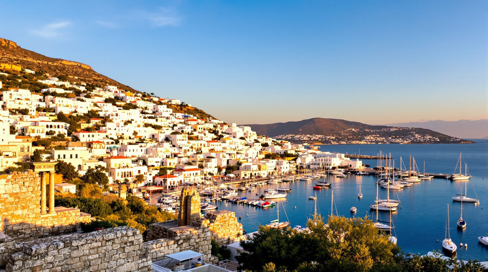 Fra havnen kan du besøge de imponerende ruiner og udgravninger, der fortæller historien om byens storhedstid. Den antikke by var et vigtigt handelscenter, og du kan stadig se rester af det gamle forsvarssystem og teatret.